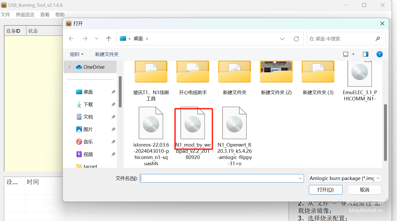 点击文件-烧录包-N1_mod_by_webpad_v2.2_20180920(固件)