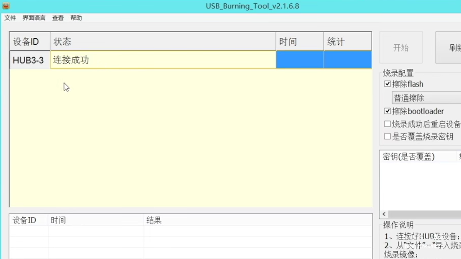 N1进入线刷后,不要拔线。运行USB Burning_Tool_v2.1.6.8 会看到连接成功字样。