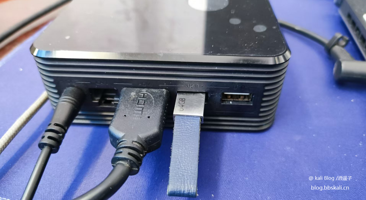 正常情况下,现在插入U盘(靠近HDMI的那个,其实两个都可以)