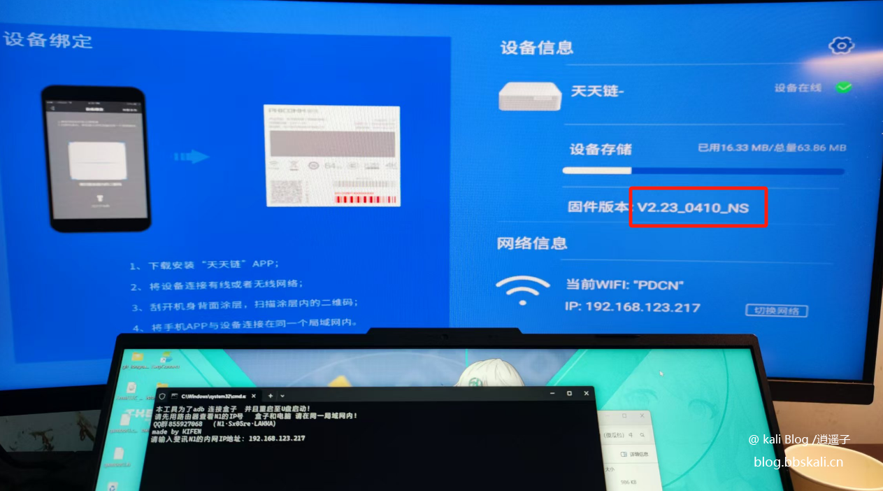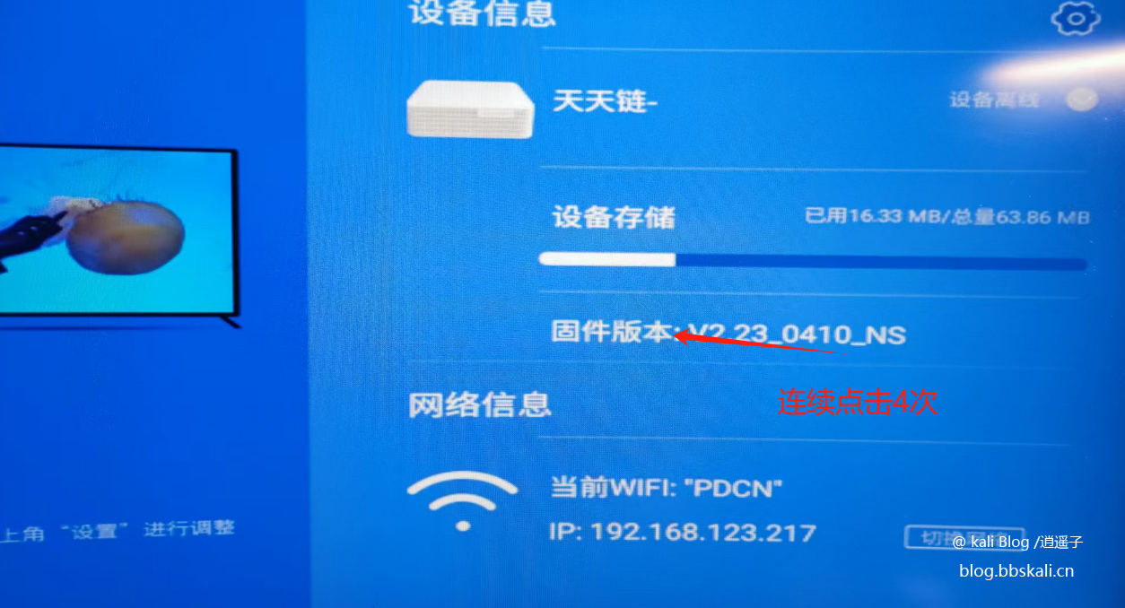 将设备连接显示器,可以看到当前的固件版本。2.2以上的都要降级。