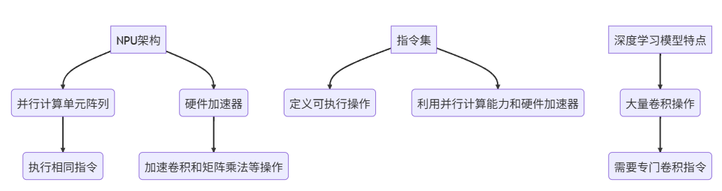 指令集架构是计算机硬件与软件之间的接口,规定了处理器可执行的指令以及数据类型。对于NPU而言,其ISA设计直接影响深度学习模型的执行效率。