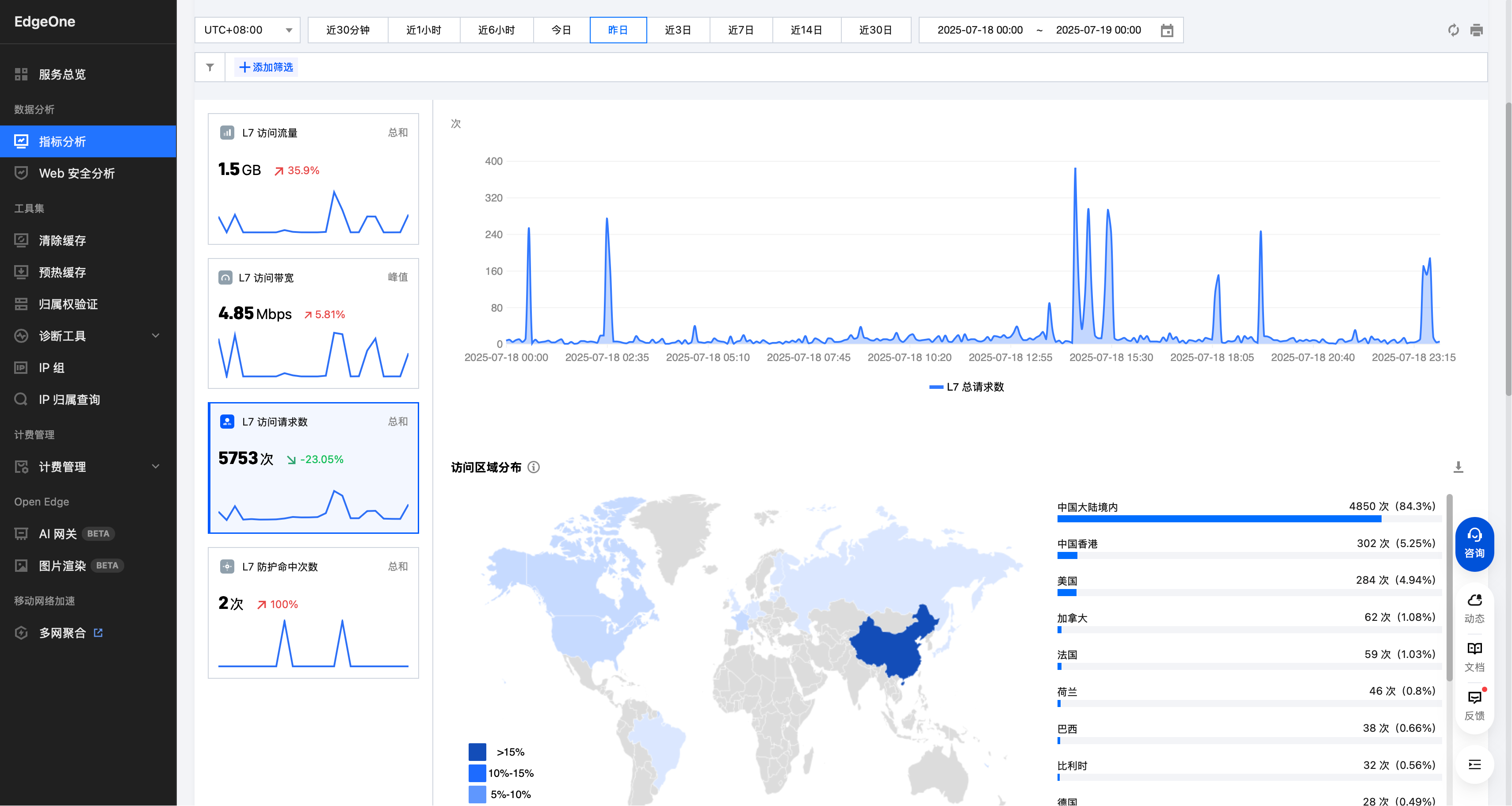 EdgeOne 是一个边缘计算平台,提供了强大的访问数据分析功能。通过 EdgeOne 的 API,可以查询特定域名或 URL 的访问数据,包括流量、请求数等。`eo-mcp-sse` 工具可以帮助用户获取这些数据。