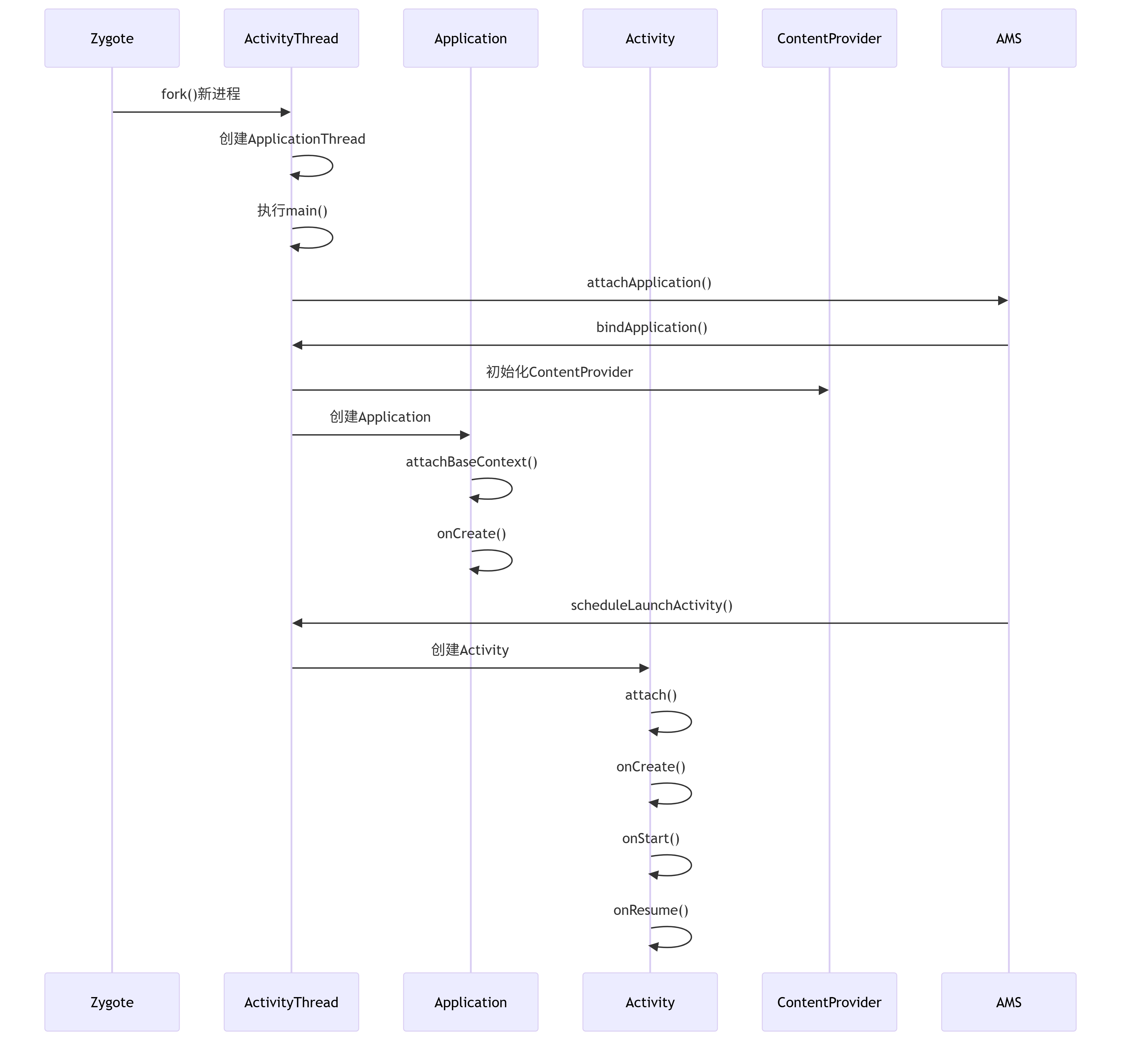 }fork完成后,新进程执行ActivityThread.main()入口。