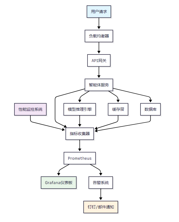 在智能体系统中,性能优化的第一步是建立完善的性能指标体系。核心指标包括: