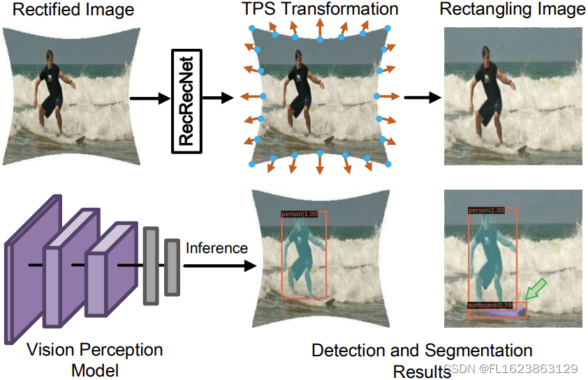 特点 首次实现大视野(FoV)视觉的双赢表示 提出了一个薄板样条(TPS)运动模块,以灵活地形成非线性非刚性校正变换 设计了一种基于DoF的课程学习,以掌握渐进变形规则并减轻复杂结构近似的负担 深入分析了为什么变形的图像边界会显著影响视觉感知模型
