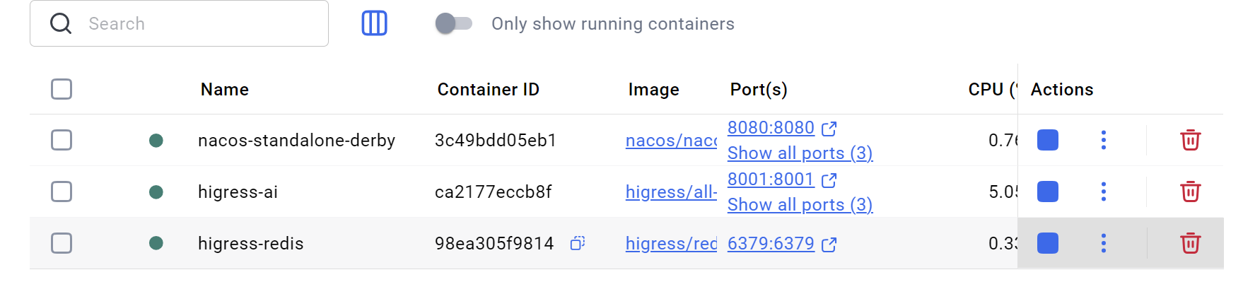 docker run -d --rm --name higress-redis -p 6379:6379 higress-registry.cn-hangzhou.cr.aliyuncs.com/higress/redis-stack-server:7.4.0-v3至此,改造所需的三个中间件均已部署完成。