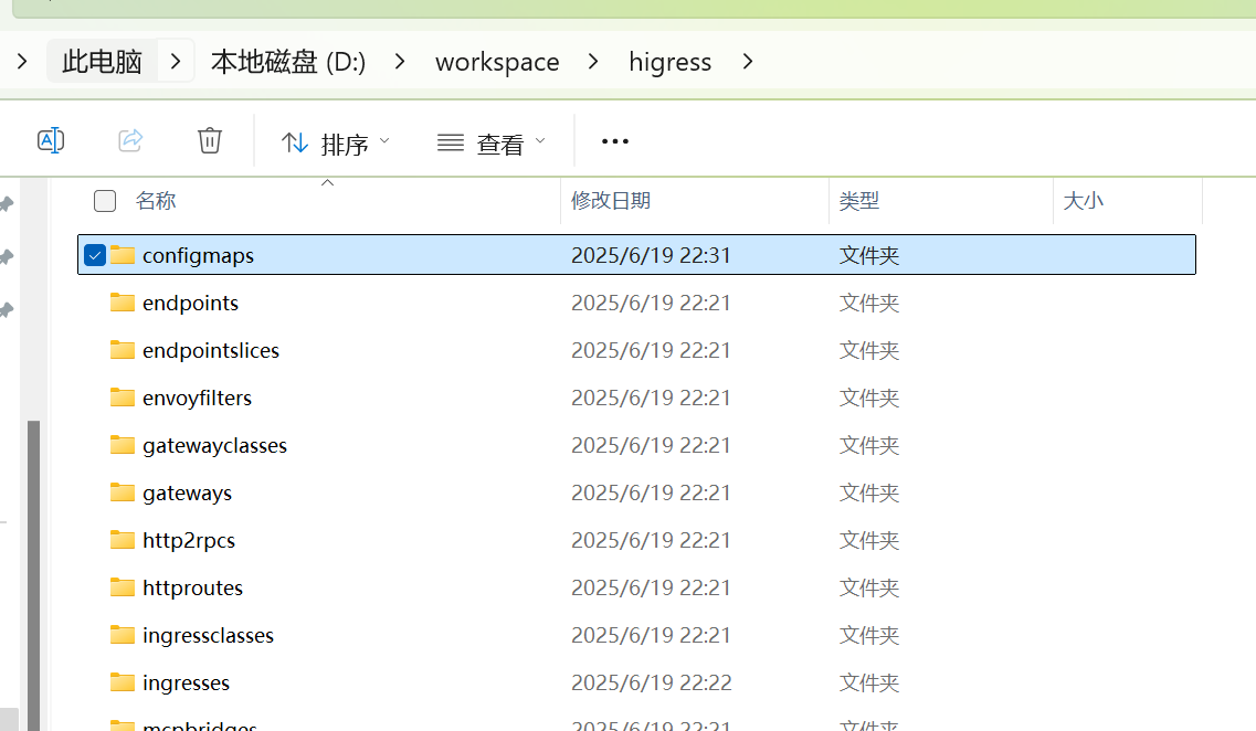 接下来需要在Higress网关中启用MCP协议转换功能。进入之前创建的Higress数据目录(如 D:\higress-data):