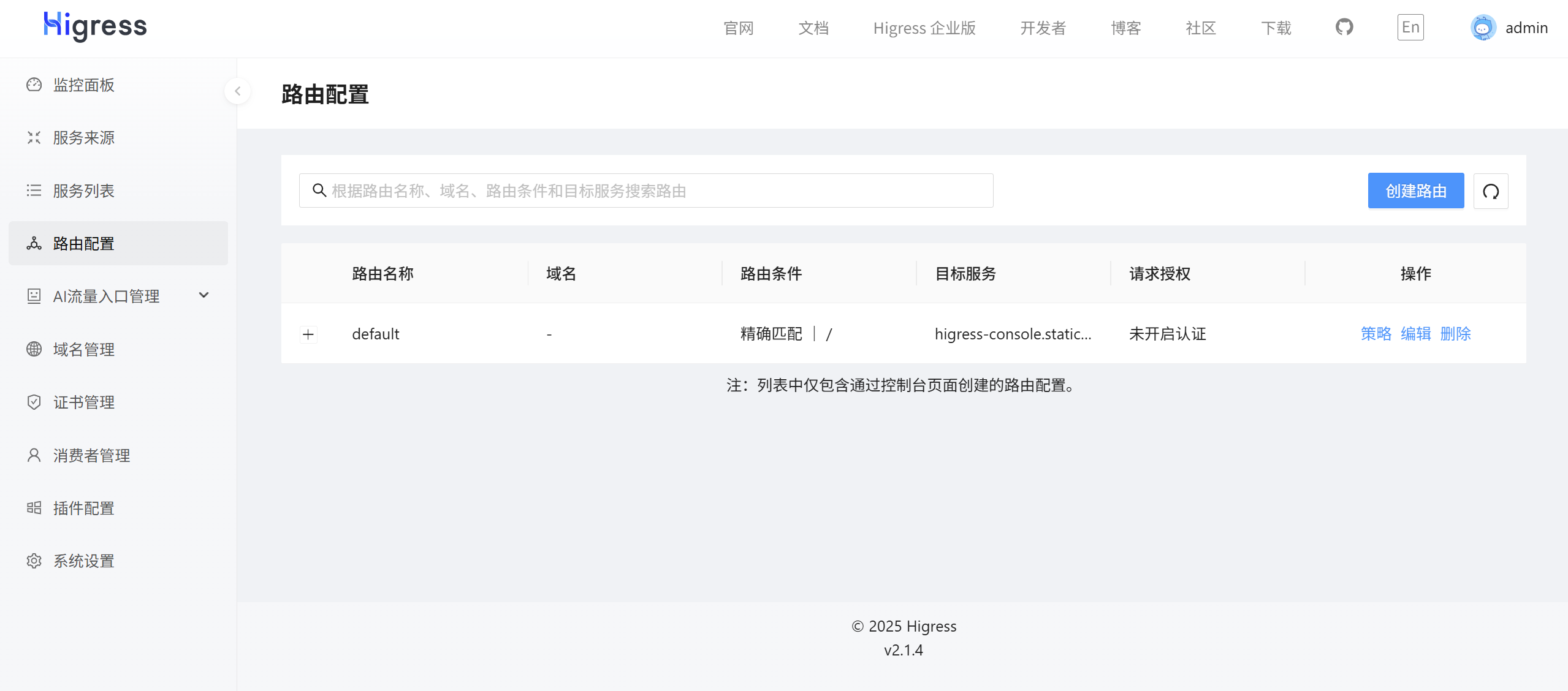成功登录后即可看到Higress控制台主界面。