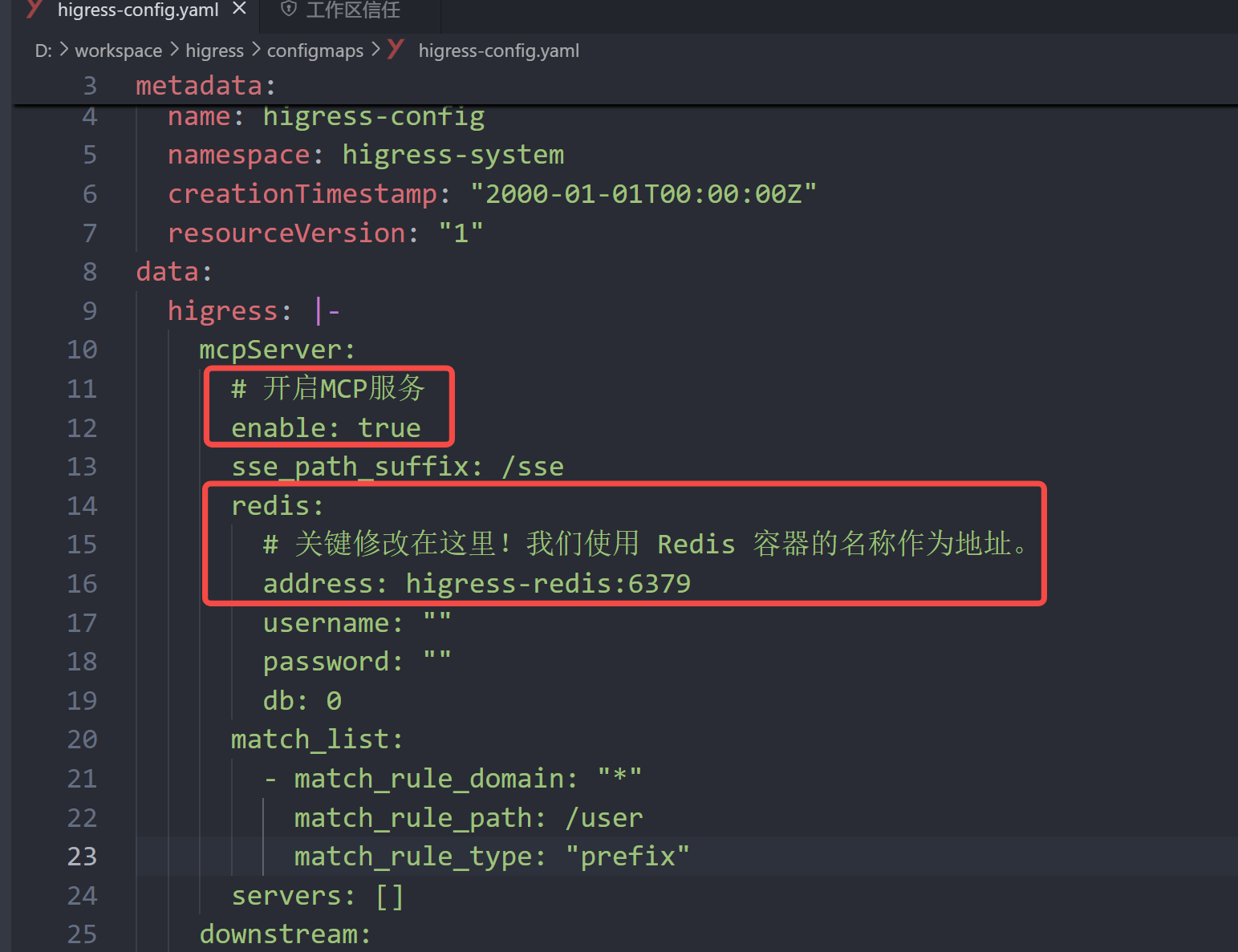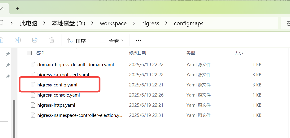 找到 higress-config.yaml 配置文件并打开编辑: