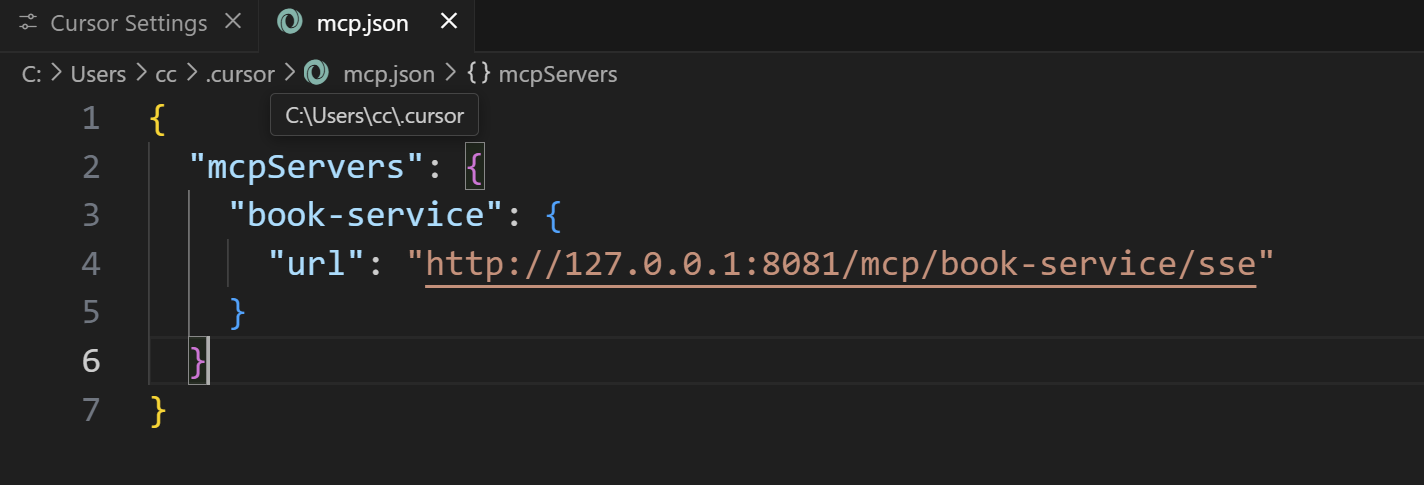 }以Cursor为例,打开设置中的MCP配置,添加我们转换后的服务: