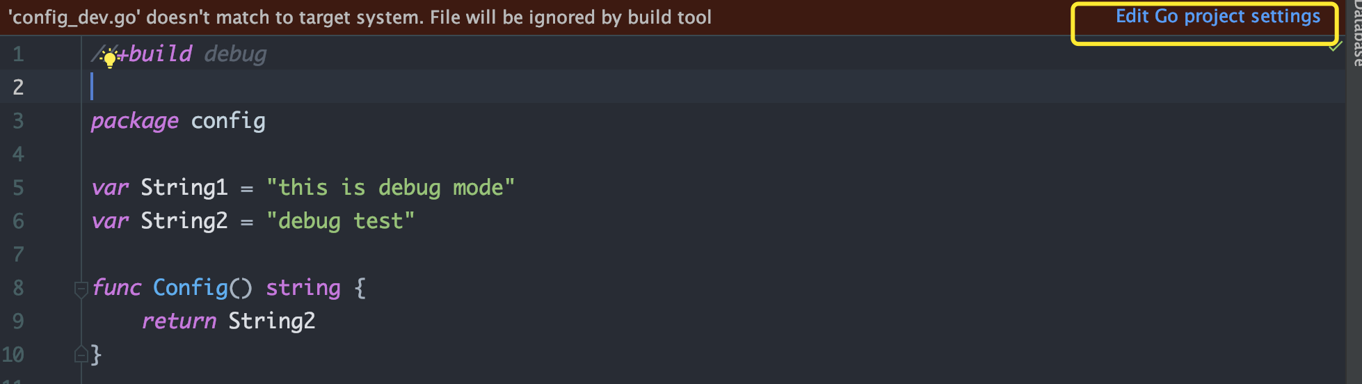 Tips: 在goland中添加自定义的编译标签时,会提示如下错误: