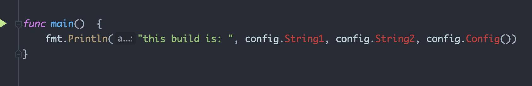 fmt.Println("this build is: ", config.String1, config.String2, config.Config())