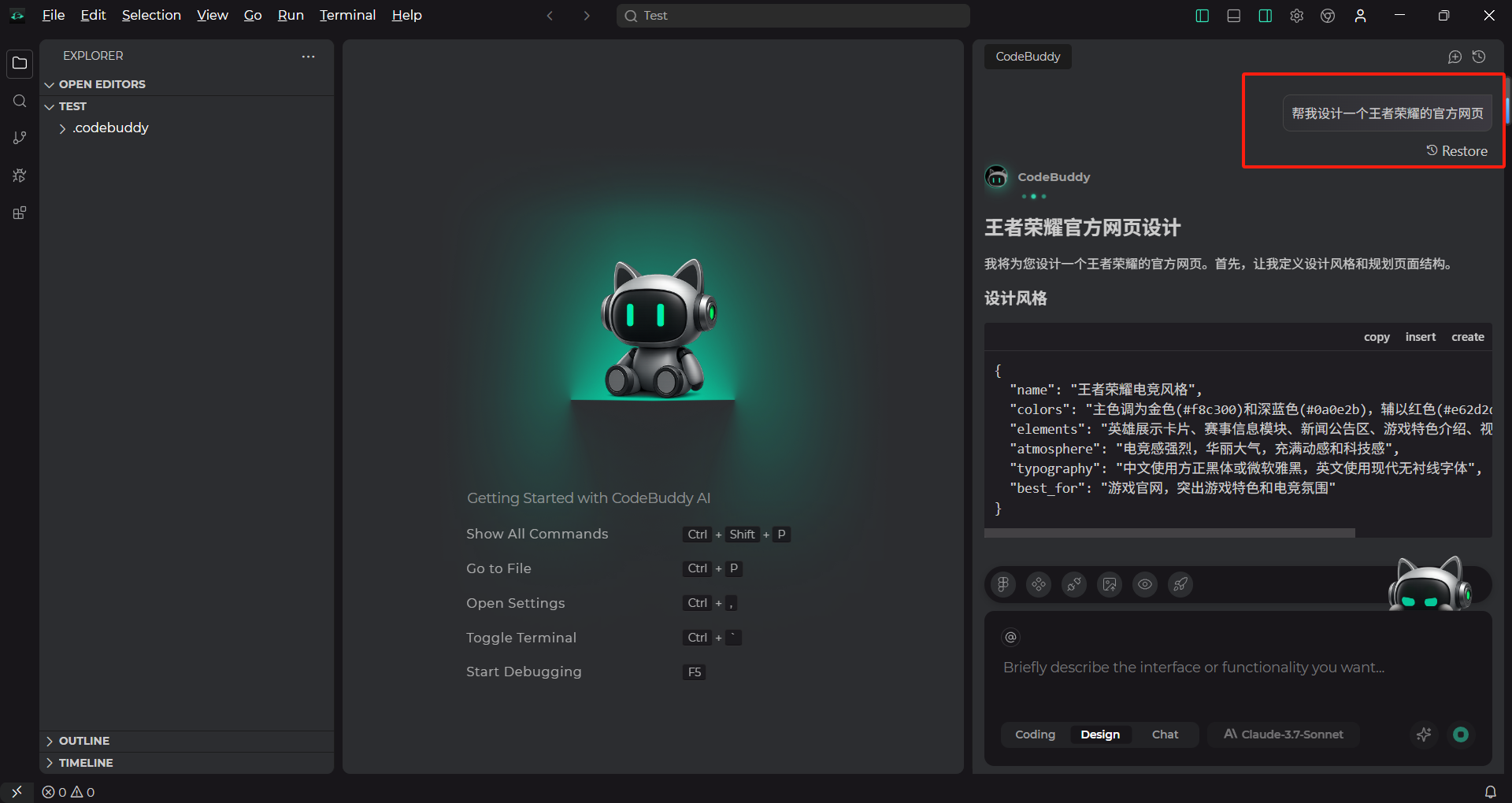 对于初创企业来说,时间就是生命。CodeBuddy IDE 通过它的设计到代码功能,能够帮助团队快速从零开始构建产品原型,进行市场验证。比如,一个初创团队在使用 CodeBuddy IDE 开发他们的社交平台时,通过 AI 生成设计和代码,团队仅用了两周时间就完成了产品的初步原型,并顺利进行了市场测试。