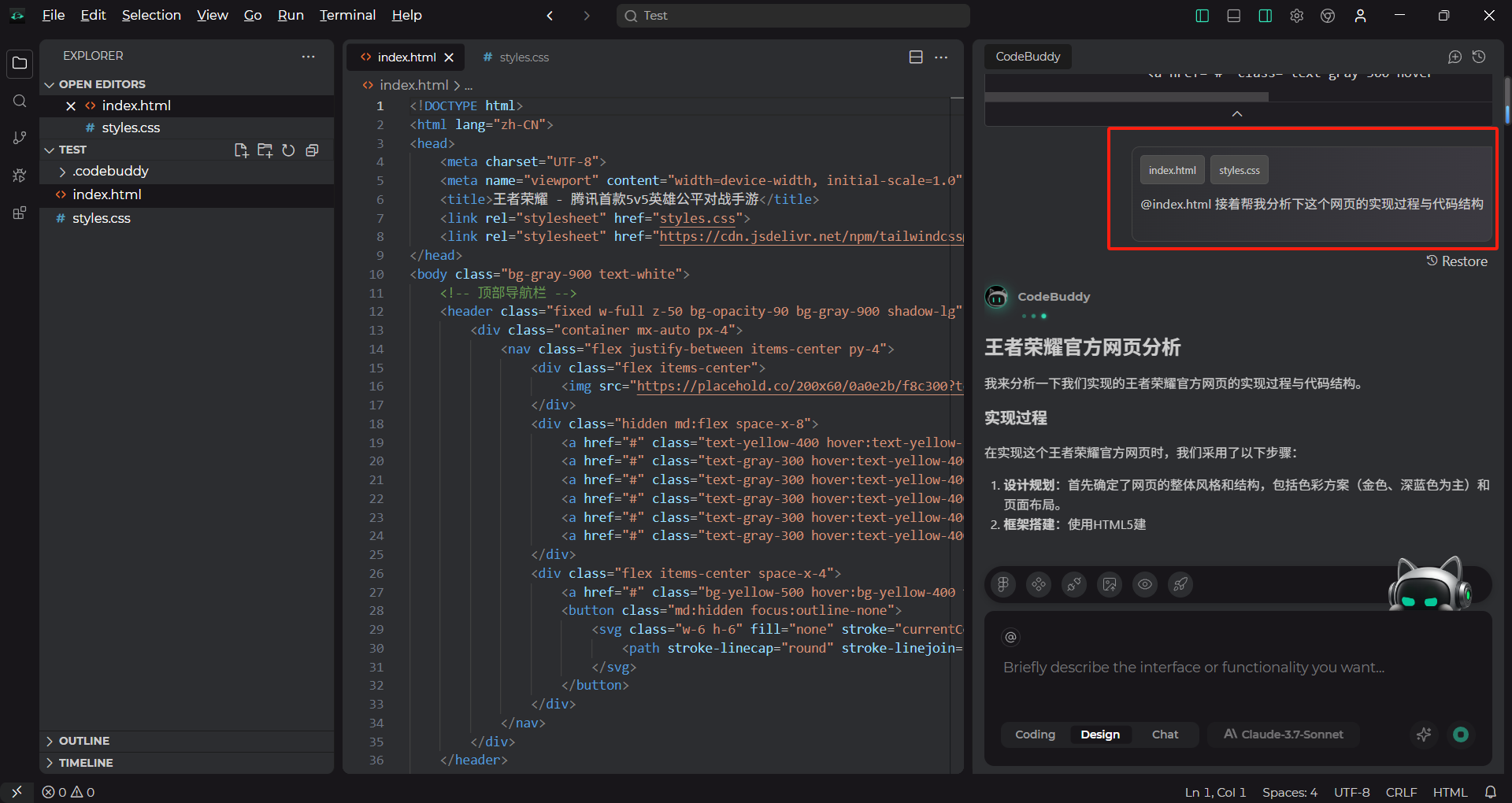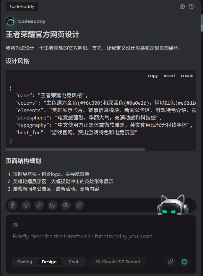 说到 CodeBuddy IDE 的最大亮点,非“设计到代码”的无缝转化功能莫属。这一功能彻底打破了传统开发中设计与开发的隔阂。我们都知道,设计师和开发者在合作过程中,经常需要反复修改设计稿和代码之间的对接,甚至有时候设计的美感与代码的功能性产生冲突,最终影响到产品的整体效果。CodeBuddy IDE 通过人工智能的帮助,能够将设计稿自动转化为高质量的代码,无论是静态页面还是复杂的动态交互,AI 都能为你快速生成符合需求的代码,让设计与开发环节完美衔接。