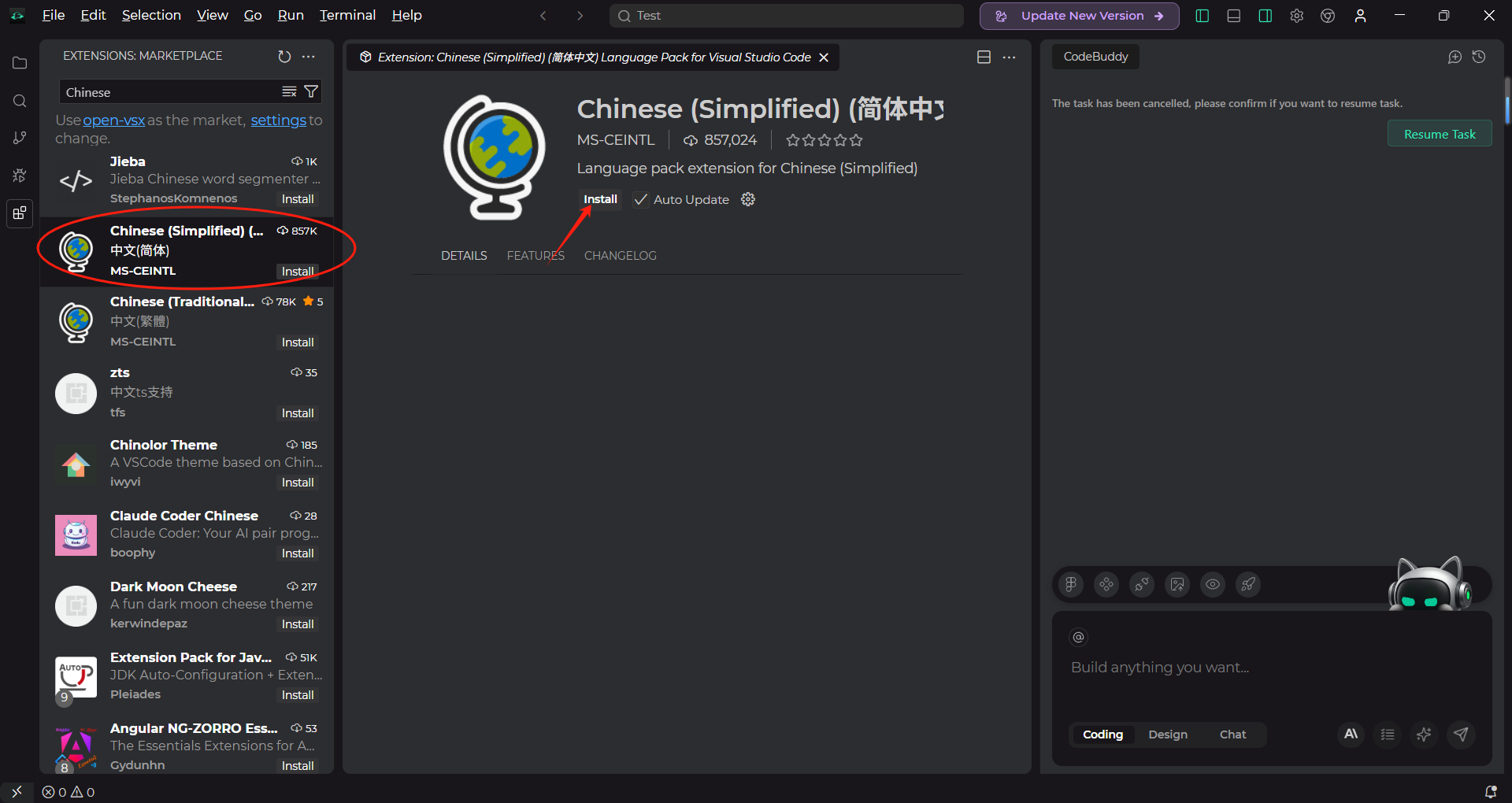 搜索【Chinese】关键字,然后安装简体中文版。