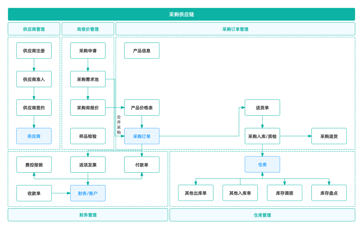 采购供应链管理系统,简称供应链管理系统(SCM),是帮助企业进行从供应商采购到商品交付的一系列管理流程。其目标是通过对供应链的合理配置,优化采购成本、提高供应链效率,确保物资的及时供应,提升整个企业的竞争力。