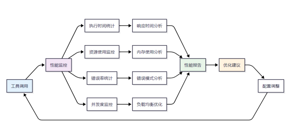 // 性能监控器 class PerformanceMonitor { private metrics: Map<string, ToolMetrics> = new Map(); private alertThresholds: AlertThresholds; constructor(thresholds: AlertThresholds) { this.alertThresholds = thresholds; } startMonitoring(toolName: string, params: any): MonitoringSession { const session = new MonitoringSession(toolName, params); session.start(); return session; } recordExecution(session: MonitoringSession, result: ToolResult): void { session.end(); const toolName = session.toolName; const metrics = this.metrics.get(toolName) || new ToolMetrics(toolName); // 更新性能指标 metrics.addExecution({ duration: session.duration, success: !result.isError, memoryUsage: session.memoryUsage, timestamp: session.startTime }); this.metrics.set(toolName, metrics); // 检查性能阈值 this.checkThresholds(toolName, metrics); } private checkThresholds(toolName: string, metrics: ToolMetrics): void { const avgResponseTime = metrics.getAverageResponseTime(); const errorRate = metrics.getErrorRate(); if (avgResponseTime > this.alertThresholds.maxResponseTime) { this.triggerAlert('HIGH_RESPONSE_TIME', { toolName, currentValue: avgResponseTime, threshold: this.alertThresholds.maxResponseTime }); } if (errorRate > this.alertThresholds.maxErrorRate) { this.triggerAlert('HIGH_ERROR_RATE', { toolName, currentValue: errorRate, threshold: this.alertThresholds.maxErrorRate }); } } generatePerformanceReport(): PerformanceReport { const report = new PerformanceReport(); for (const [toolName, metrics] of this.metrics) { report.addToolReport({ toolName, totalExecutions: metrics.getTotalExecutions(), averageResponseTime: metrics.getAverageResponseTime(), errorRate: metrics.getErrorRate(), throughput: metrics.getThroughput(), recommendations: this.generateRecommendations(metrics) }); } return report; } }