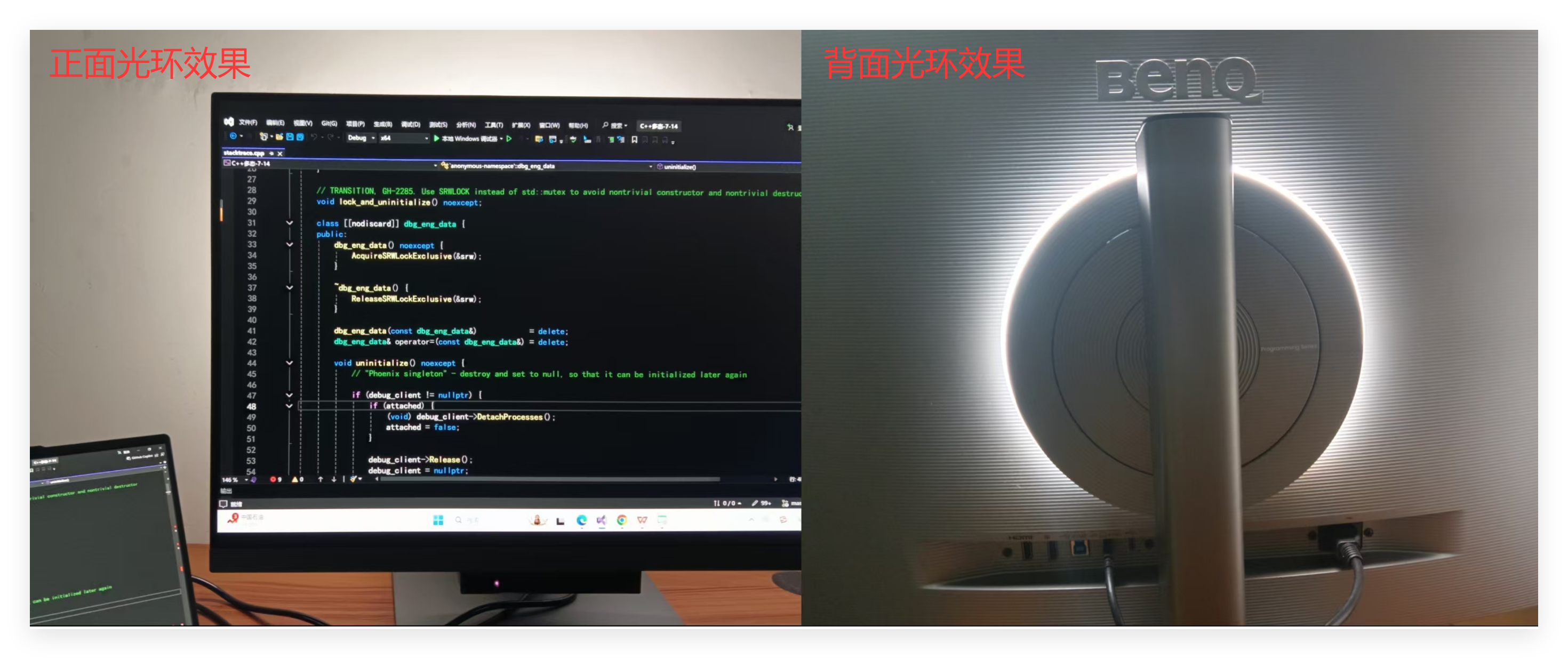 我喜欢夜间写代码,普通的显示器昏暗环境下刺眼的屏幕会快就会导致我的眼睛干涩,让需要白天已经长时间盯着电脑屏幕的眼睛雪上加霜,而RD280U还搭载了BenQ的Moonhalo智慧光环技术,它能自动调节显示器的亮度和色温,以适应不同环境光的变化。这一创新技术有效减少了长时间编程带来的眼睛疲劳,让程序员能够保持长时间的舒适操作。