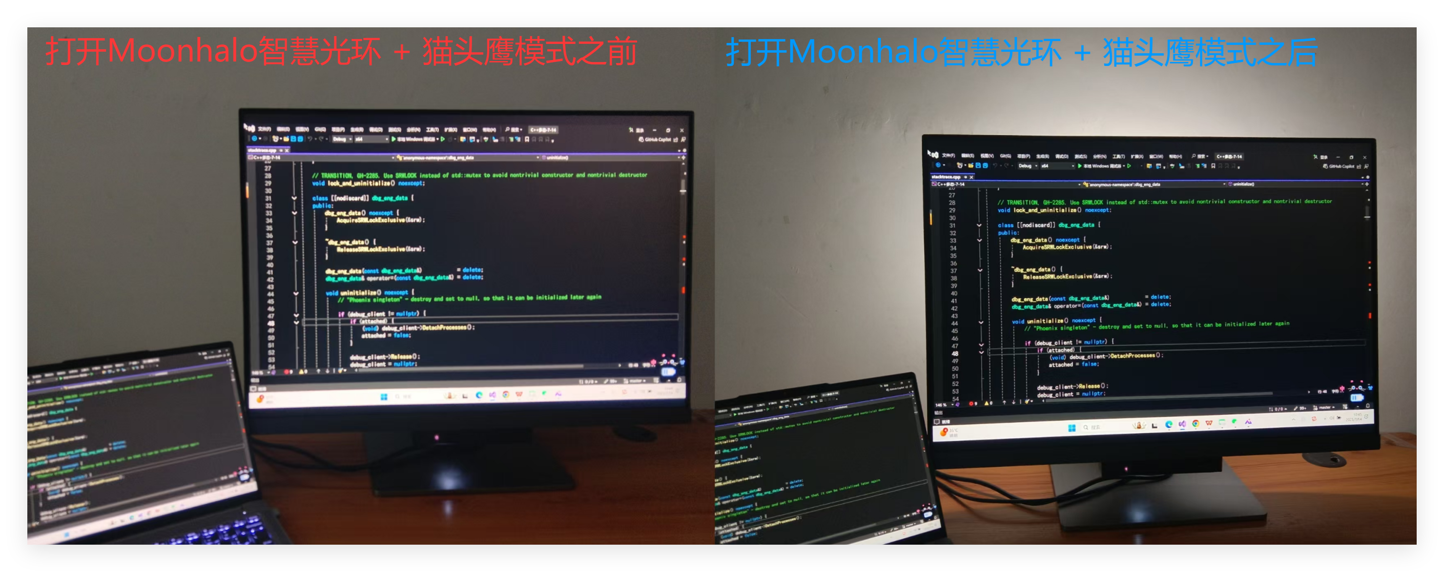 下面是使用Moonhalo智慧光环 + 猫头鹰模式前后对比效果展示: