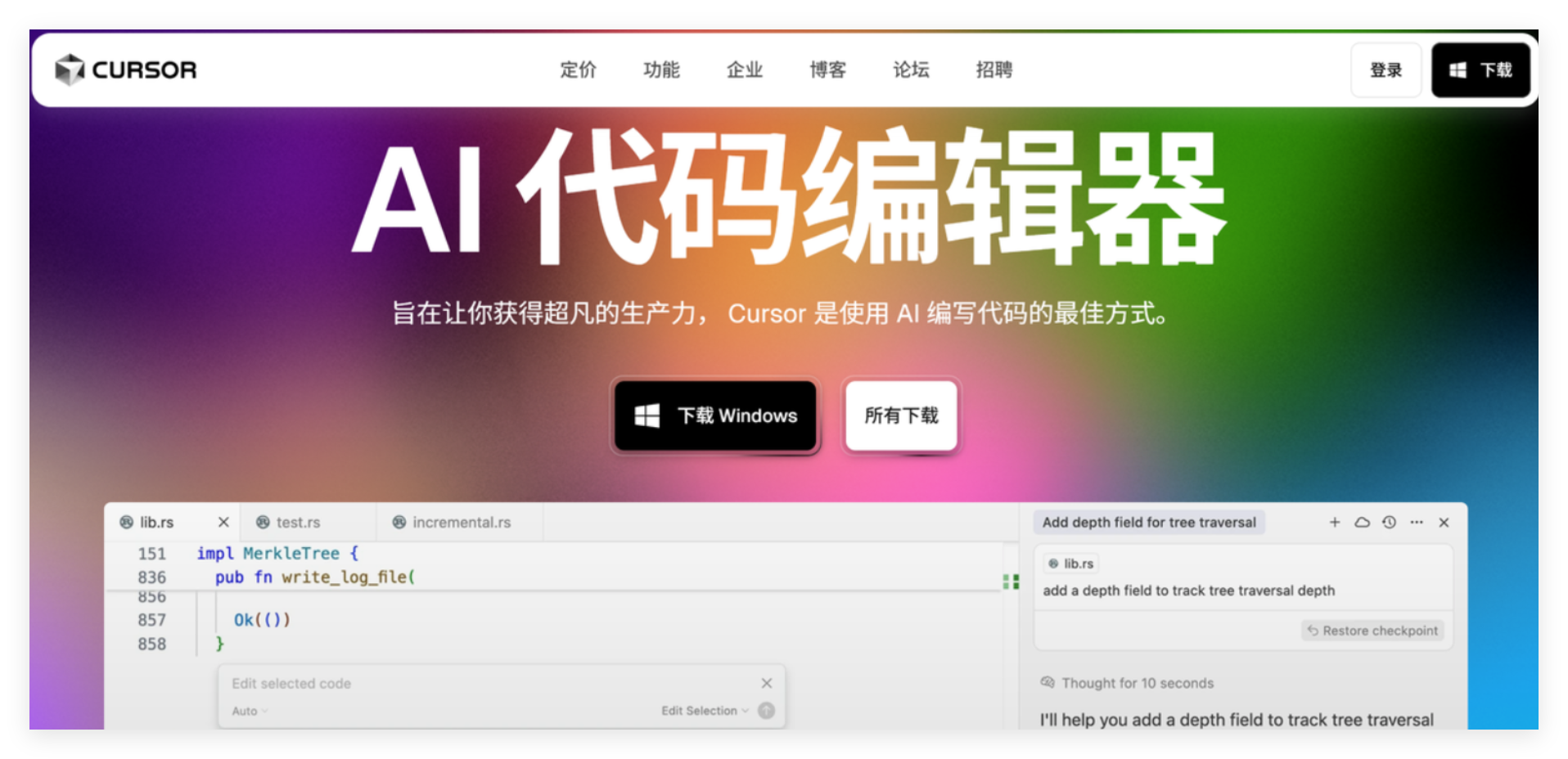 作为程序员,在我日常的工作中,Cursor编程工具是我最常用的代码编辑器之一。Cursor为我提供了强大的代码高亮、智能代码补全和调试功能,能够大大提高我的开发效率。特别是在进行复杂的项目开发时,Cursor的多任务并行处理能力和简洁的界面设计帮助我专注于编写和调试代码,而不用担心过多的界面杂乱。