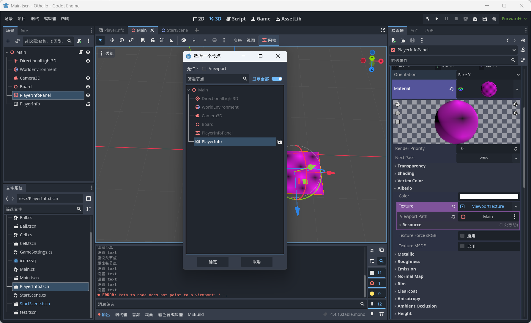在主场景中创建PlayerInfoPanel(MeshInstance3D)用来承载游戏玩家信息显示,创建SubViewport一个实例化场景PlayerInfo。