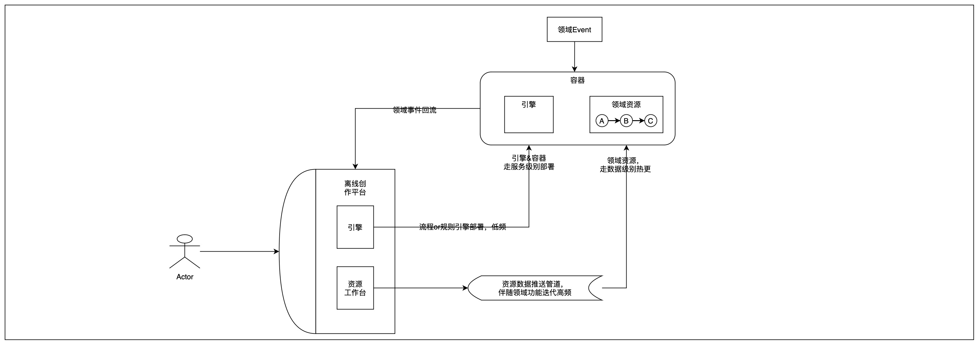 (2)“分离通用框架与业务逻辑”:把业务逻辑极致地封装在“领域资源”里,通用功能(如事件分发、执行环境)由“容器”负责。