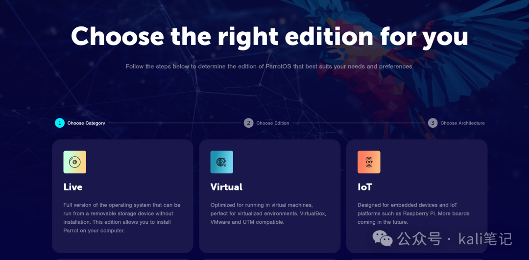 Parrot是一个基于 Debian 的、面向安全的 Linux 发行版,具有一系列专为渗透测试、计算机取证、逆向工程、黑客攻击、隐私、匿名和加密而设计的实用程序。现对其安装和使用进行简单的介绍,并和Kali进行对比。首先我们到官网下载镜像 www.parrotsec.org