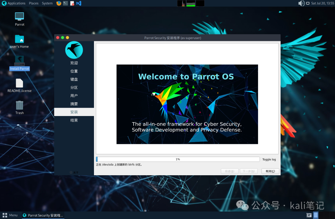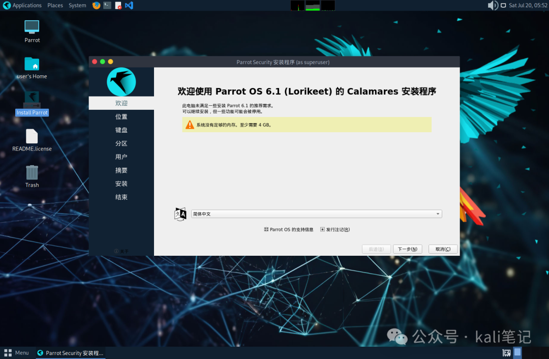 在进入桌面后,在桌面有Install Porrot图标。双击进行安装。