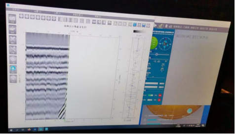 方法:将常规探地雷达进行改装,满足防水和抗压要求,同时,为了满足远距离投送问题,水下机器人也需要进行改装,加装四个轮子。然后将改装后的探地雷达搭载到改装后水下机器人上,探地雷达通过水下机器人沿着坝体一道一道拖行,探地雷达向坝体向下发生电磁波,电磁波根据地下介质的不同,反射电磁波,控制端(笔记本电脑)采集软件实时采集相关数据,可以实时反馈出坝体下面的异常情况。水下机器人上采集到的视频信息也可以实时传送到岸上,通过采集波形图和视频数据可以判断坝体病害情况。对于异常情况可在软件上实时标记,后期可以根据相关数据对坝体病害进行有针对性治理。采集结果如下图: