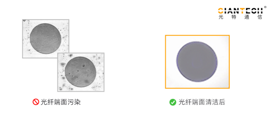 光纤端面的污染物(包括粒径≥0.5μm 的尘埃颗粒、油性残留物、指纹脂质)会导致多重损耗机制:颗粒散射(占比 60%)、薄膜干涉(占比 25%)、吸收损耗(占比 15%)。实验数据显示,一颗直径 1μm 的尘埃附着在单模光纤端面上,可造成0.8dB 的耦合损耗。