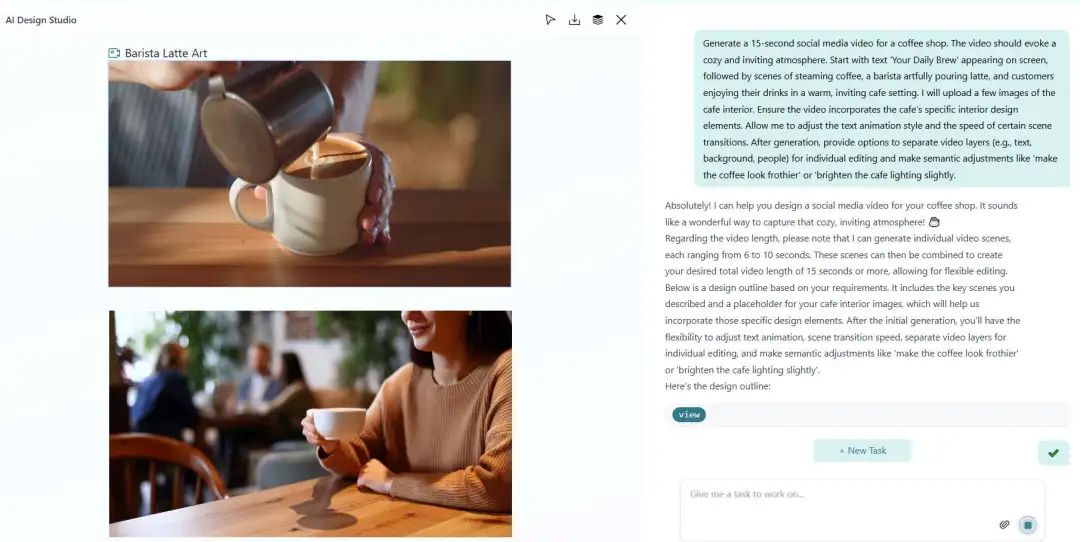 它不再是简单的图片或者视频生成器,设计师们可以对生成的图片内容进行微调,通过学习图片的风格化特征,通过一键式的交互,让AI真正的与用户进行协同。