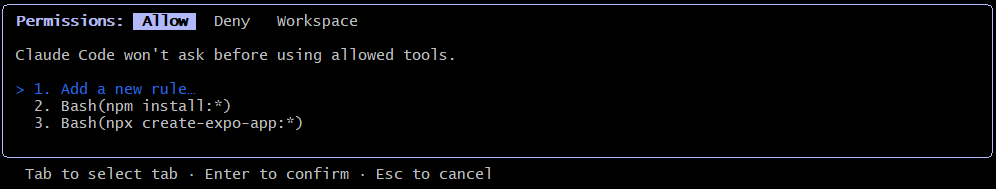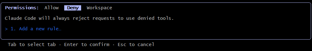 你也可以在Deny里面添加被拒绝执行的命令。