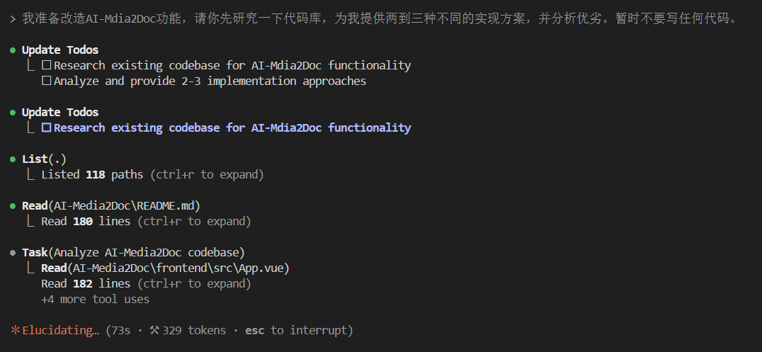 我准备改造AI-Media2Doc功能,请你先研究一下代码库,为我提供两到三种不同的实现方案,并分析优劣。暂时不要写任何代码。