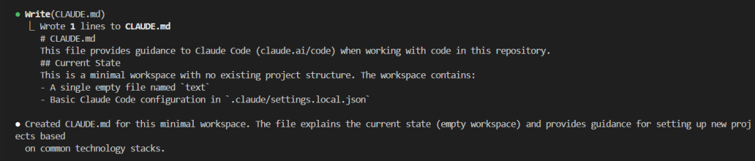 刚启动Claude Code,运行 /init 命令,会自动为你生成一个 CLAUDE.md。