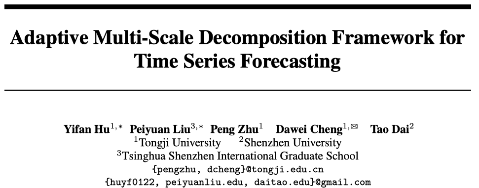 论文标题:Adaptive Multi-Scale Decomposition Framework for Time Series Forecasting