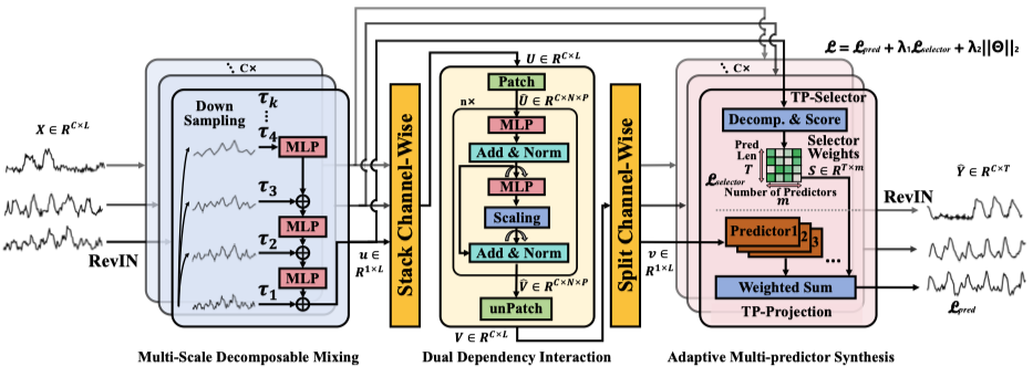预测器合成:采用稠密MoE(混合专家)结构,加权聚合多尺度预测结果,避免稀疏MoE的负载不均问题。