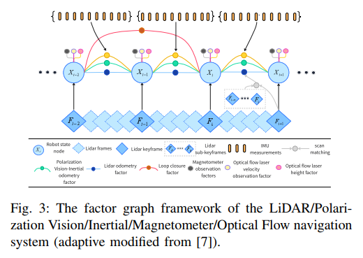 论文提出了一种创新的多传感器紧耦合SLAM框架,通过融合激光雷达、偏振视觉、惯性测量单元、磁力计和光流等多种传感器数据,显著提升了在退化环境(如低纹理、特征稀缺或LiDAR性能下降场景)中的定位与建图性能。全文将从摘要与引言、相关工作、方法论细节、实验验证以及结论与展望五个方面展开系统分析,重点剖析其技术创新的核心思想、多传感器融合机制的数学表达、因子图优化框架的设计理念,以及在复杂环境中的性能表现,为读者提供一个全面而深入的技术视角。