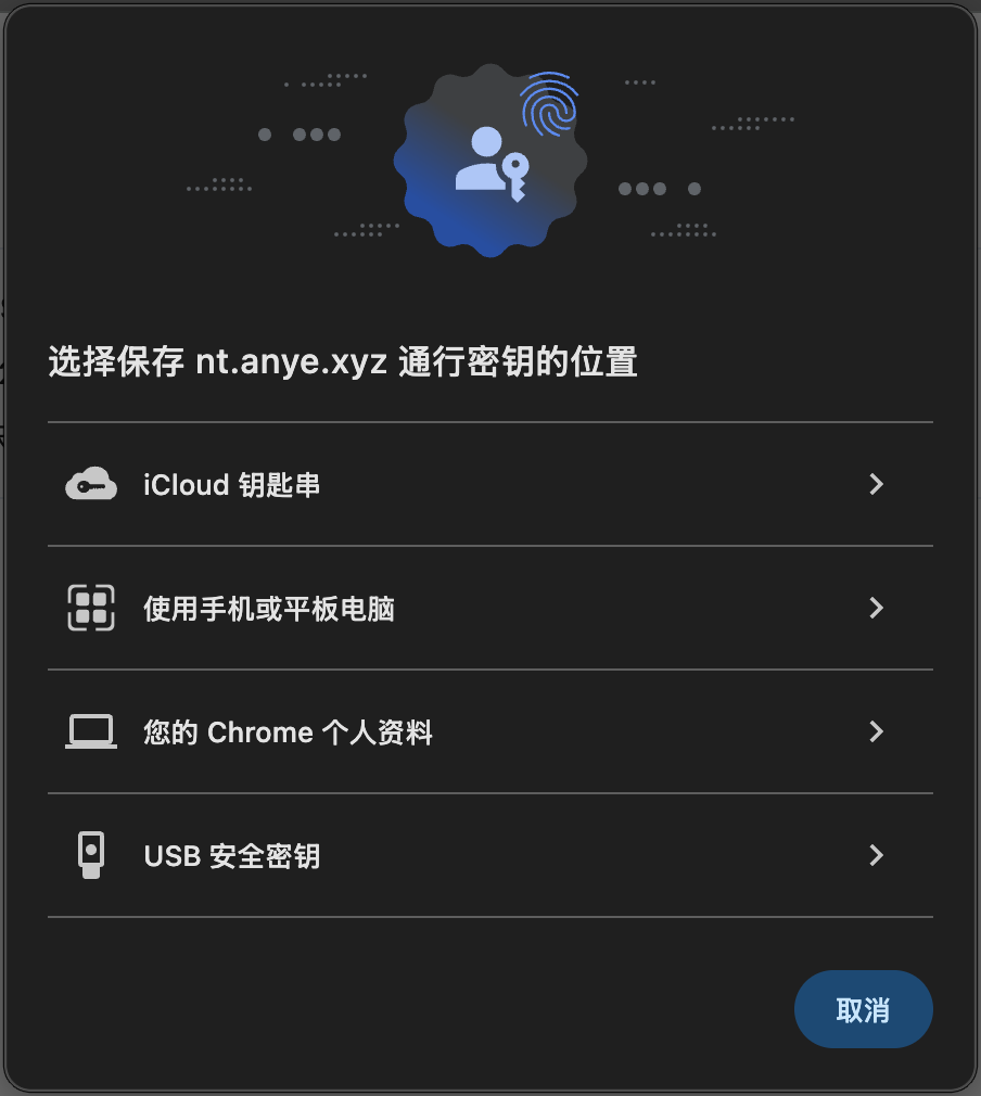 会唤起系统自带的 WebAuthn 认证程序: