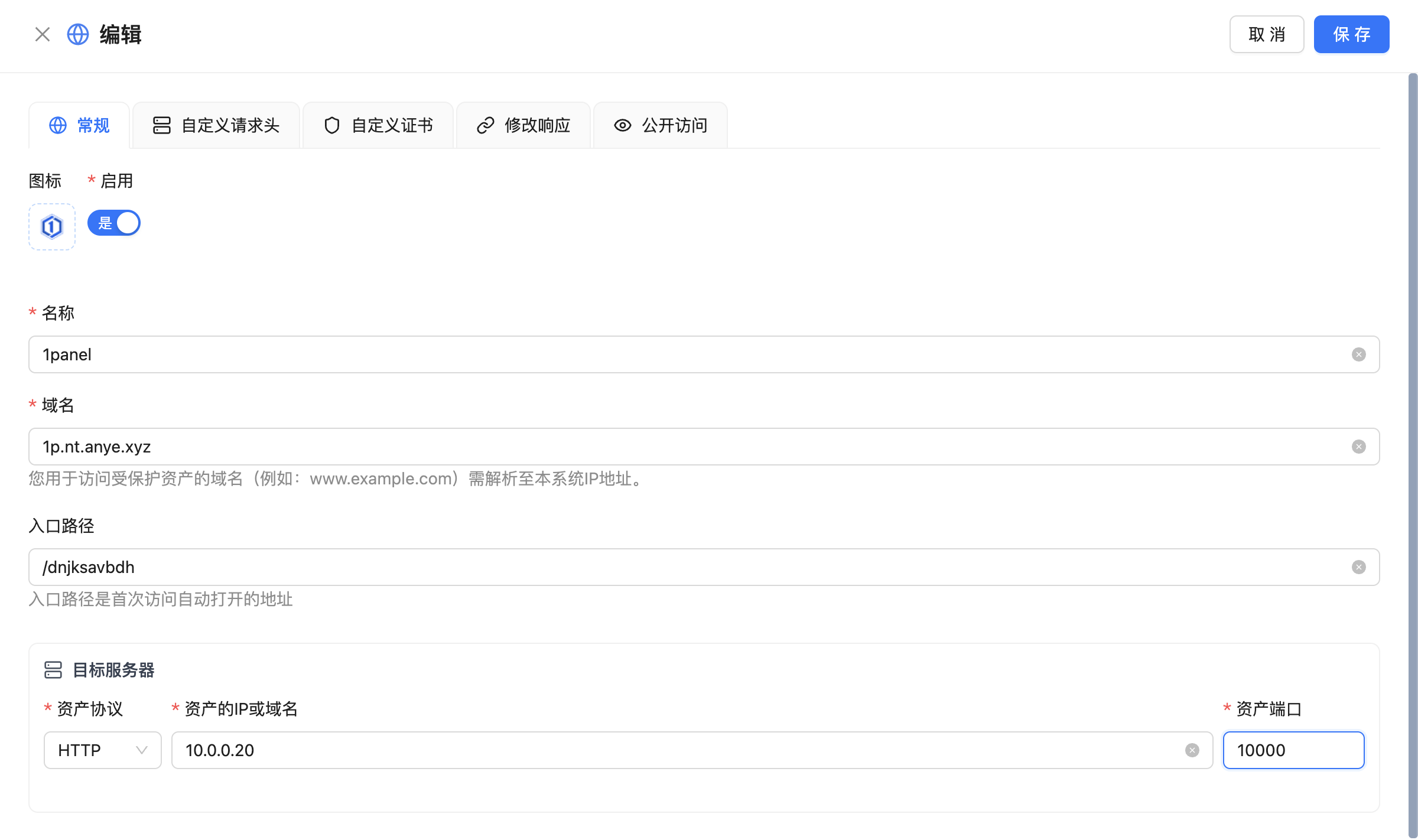 域名:反向代理后用于访问的域名