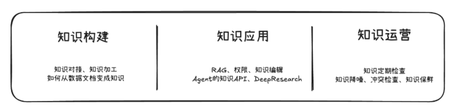 要让知识在AI时代发挥作用,需要一套科学、系统化的方法。这主要包括三个部分:知识构建、知识应用和知识运营。一个真正的企业级知识库,必须将这三者结合起来。