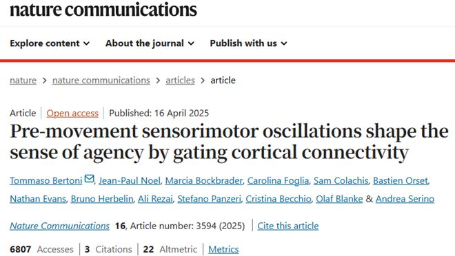 这项研究揭示,我们“控制动作”的主观体验,其实根植于大脑运动区在动作发生前的节奏性活动,尤其是8Hz左右的α波相位。这一节奏不仅预测我们是否会产生主控感,还通过协调大脑各区域之间的连接,调控感知、意图与反馈之间的信息整合。从神经元放电到跨区域通信,这种以节奏驱动的分布式机制,体现了大脑作为一个复杂系统,在“自我感”形成中的关键作用。