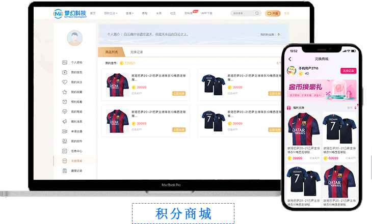 在体育直播平台中,积分商城服务承担用户积分消费与激励转化核心角色,需支持: