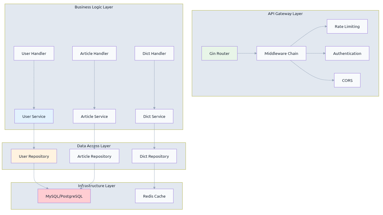 1. 清晰的分层架构:项目采用了经典的四层架构模式,每一层都有明确的职责边界,这种设计让AI工具能够更容易理解代码结构并生成符合架构规范的代码。