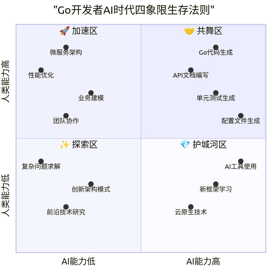 在这个象限中,Go开发者可以探索AI尚未涉足的前沿领域。