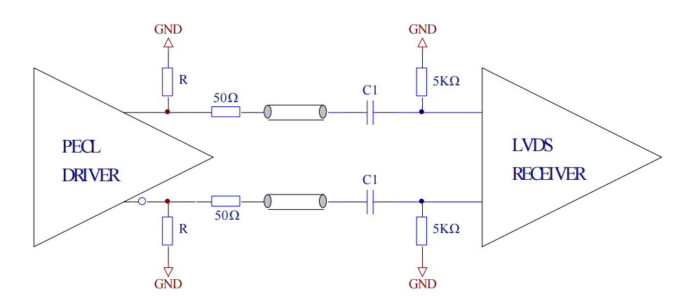 PECL 为 5V 供电的射极耦合逻辑(与 3.3V LVPECL 兼容,仅共模电压不同),其与 LVDS 的互连设计类似 LVPECL,但需注意供电电压差异导致的参数调整。