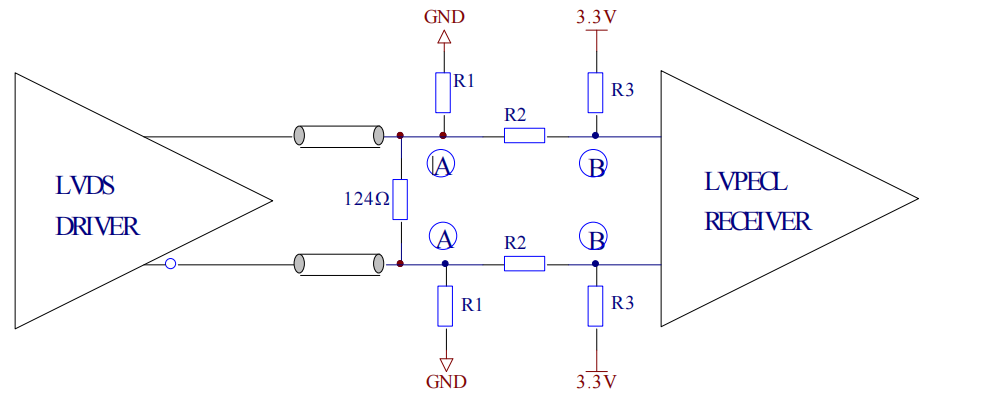 实际应用中需结合具体器件手册(如 LVPECL 输出摆幅、LVDS 输入共模范围)调整电阻值,不可直接套用理论参数。