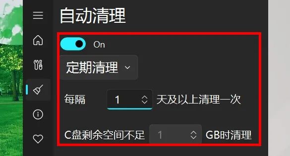 5、另外,你还可以设置自动清理的条件,让 C 盘定期自动清理,特别方便,这样就能避免因为 C 盘空间不足导致系统卡顿了。