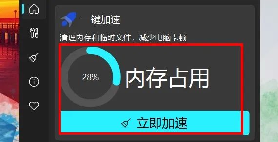 2、打开软件后,点一下 “立即加速”,就能清理掉多余的内存占用。
