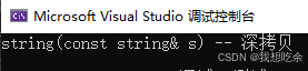 }为了更好的说明问题,这里需要借助一个深拷贝的类,下面模拟实现了一个简化版的string类。类当中实现了一些基本的成员函数,并在string的拷贝构造函数和赋值运算符重载函数当中打印了一条提示语句,这样当调用这两个函数时我们就能够知道。