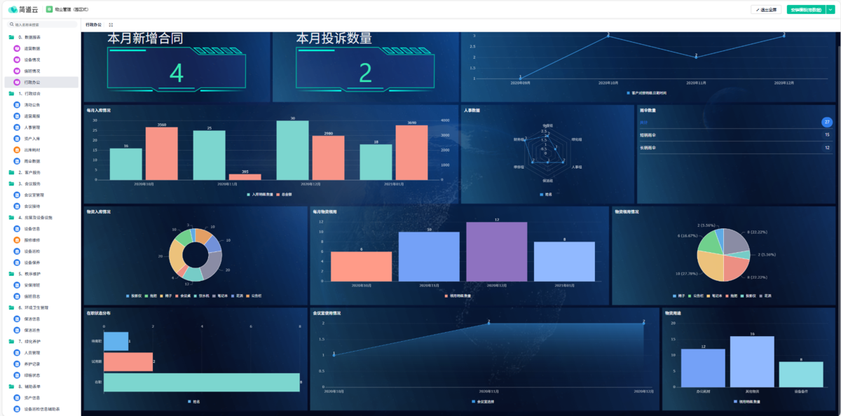 );在这里我给大家推荐一个业务人员就能够直接上手的高性价比、零代码平台——简道云物业管理系统,简道云物业管理系统将各部分收集到的数据信息汇总在数据报表,对运营、设备、值班和行政办公情况进行直观展示,便于管理人员处理工作。